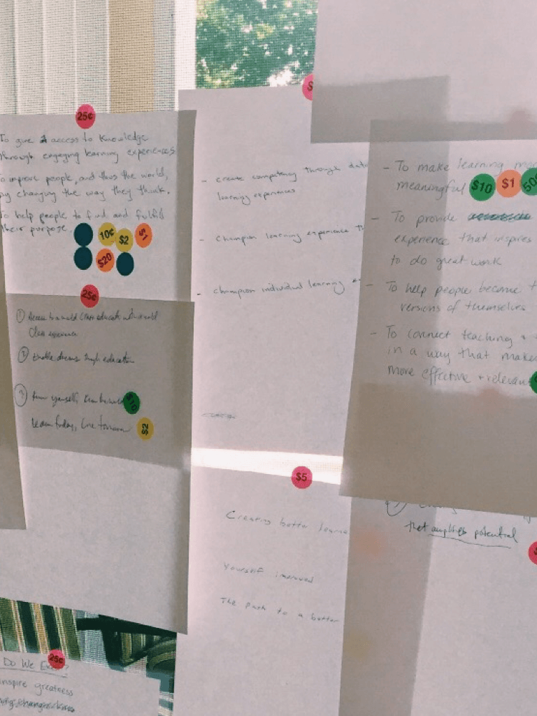 After three days of exploring everything from personal defining moments to mind mapping, word association, Crazy Eights, voting, and deep discussions, we were able to walk away with a clear mission statement and three core values that represented not only the company but also the stakeholders’ core beliefs. This was a big step in the branding exercise and really united us in a common direction. Our mission was:
