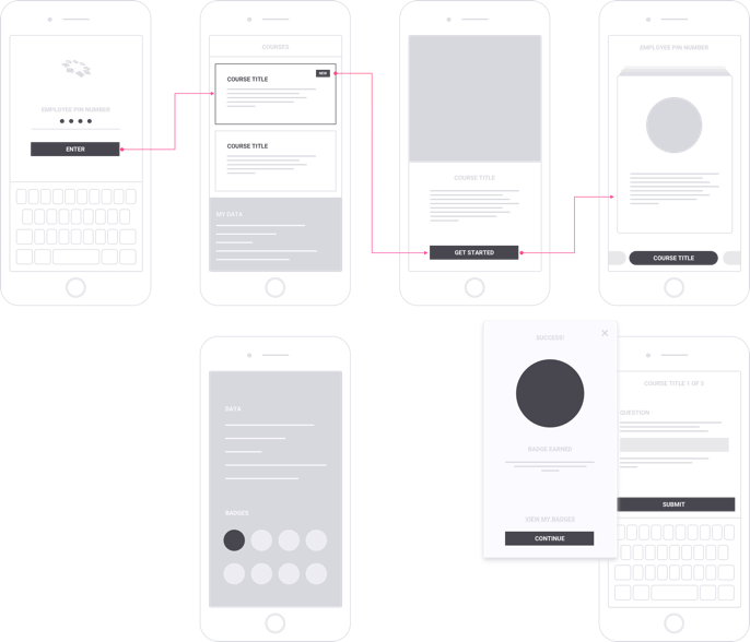 As our hypotheses were being proven through user testing, we starting looking at the design on a macro level. We developed user flows for how a learner would move through the product feature by feature. This helped us define contextual animations and opportunities for delight.