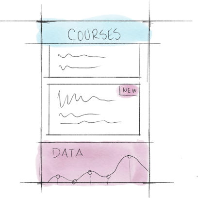 Beyond adding delight, illustrations help visual learners retain information. We knew we needed something fun and bright that we could build at scale. There would be a lot of spot illustrations needed in the courses and we would need non-artistic designers to help generate them. We created a simple framework of basic rules and colors as well as Pinterest boards for inspiration. After some quick training, the designers sat with content creators to devise illustrations that paired well with the course content. All illustrations passed through me for art direction and consistency.